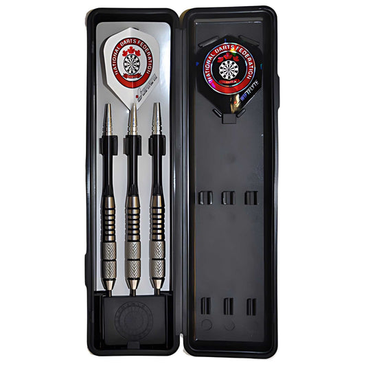 Swiftflyte is a major sponsor of the National Darts Federation of Canada (NDFC), working directly with the board and its members to improve andĀ foster the darts community within Canada. Swiftflyte darts are packaged in a slim-pack clamshell. Enclosed in the clamshell is a robust, pocket-friendly, hinged carry case and safety point guard. Brass and Nickel Silver darts are excellent for beginner to intermediate players. Tungsten, the the most popular choice among dart players is 2.5 times heavier than brass resulting in a slimmer dart that maximizes scoring potential.