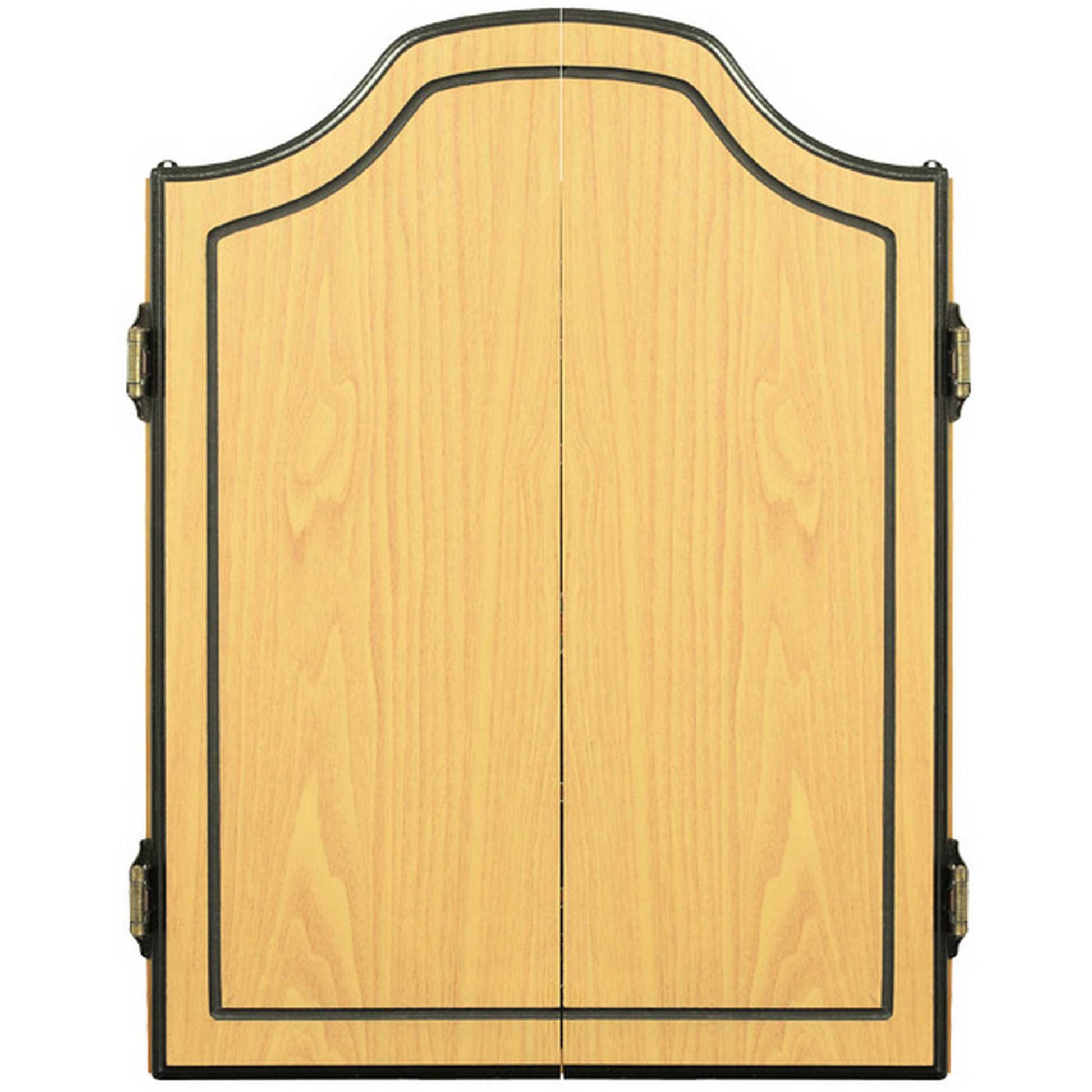 - Elegant Beech Wood Cabinet: Adds sophistication to your space, protects your walls from stray misthrown darts, and features door-mounted scoreboards, chalk, and a duster for effortless scorekeeping