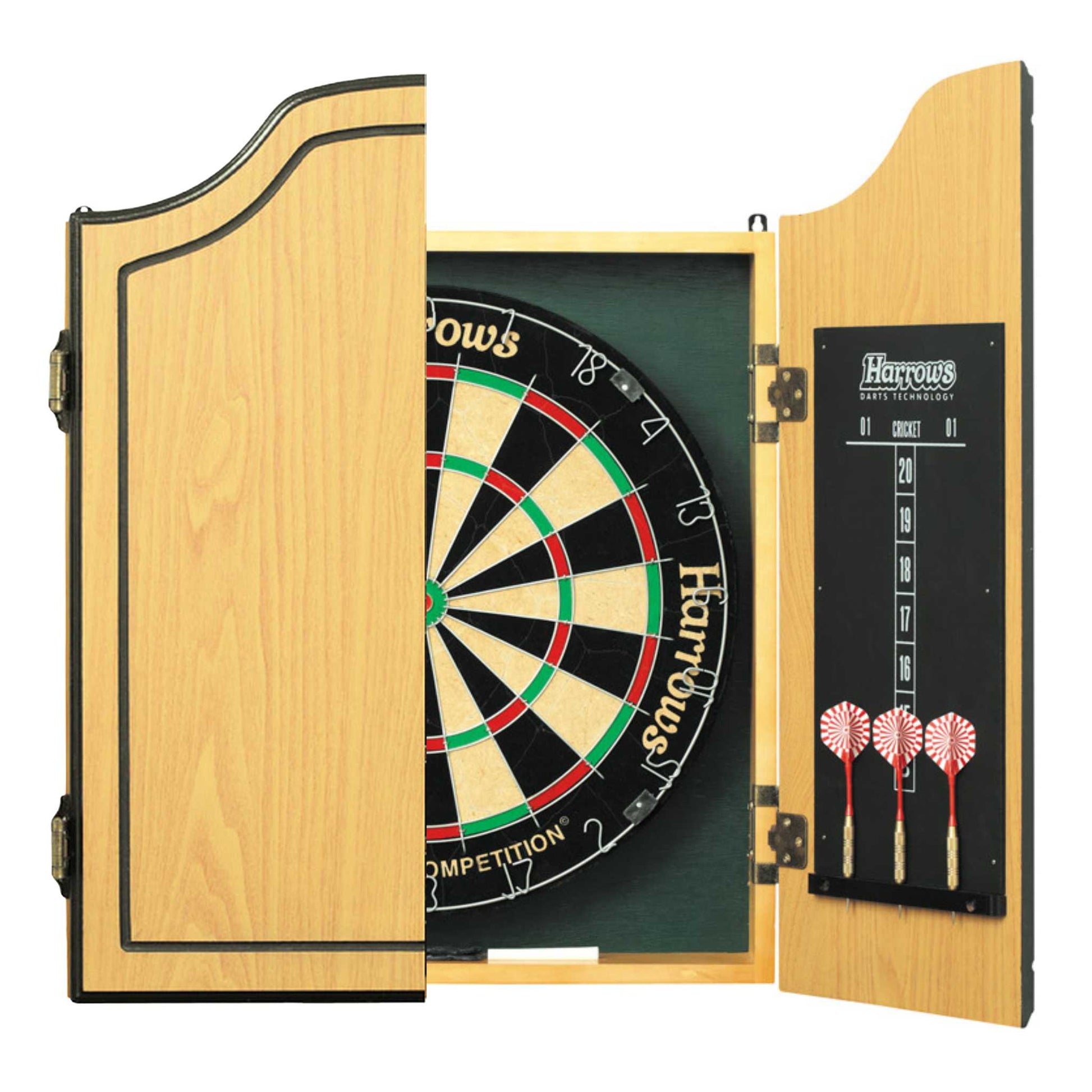 Harrows Pro's Choice Complete Darts Set with Elegant Beech Wood Cabinet and Professional-Grade Dartboard