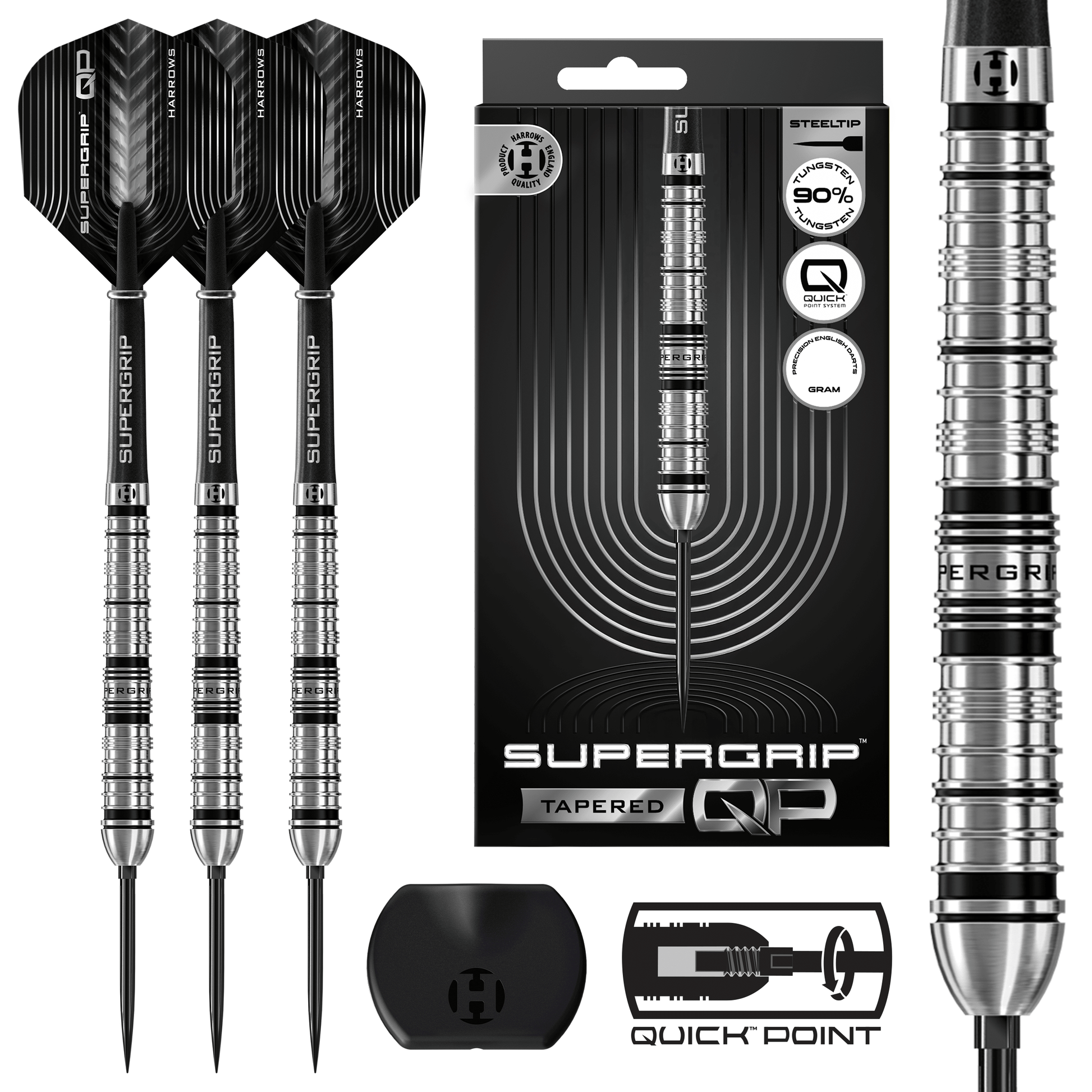 A name synonymous with Harrows and trusted by players worldwide, Supergrip enters a bold new era with the launch of Supergrip QP. Crafted from premium 90% tungsten, these darts embody the Supergrip promise of ultimate control and consistency, featuring meticulously engineered deep single and dual ring cuts along the full barrel length.