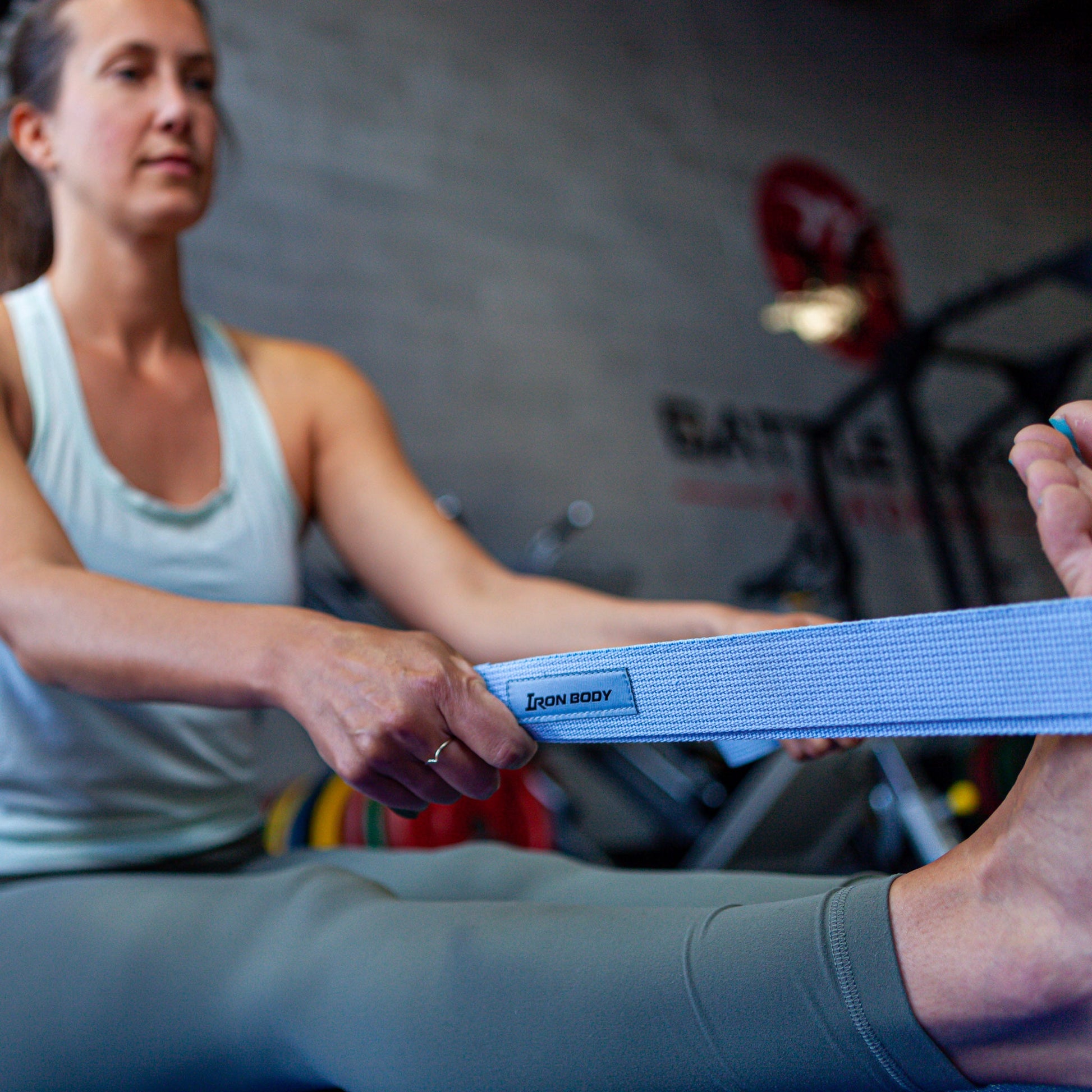 - Includes 1 x cotton light blue yoga strap with buckle for increased reach and deeper stretches
