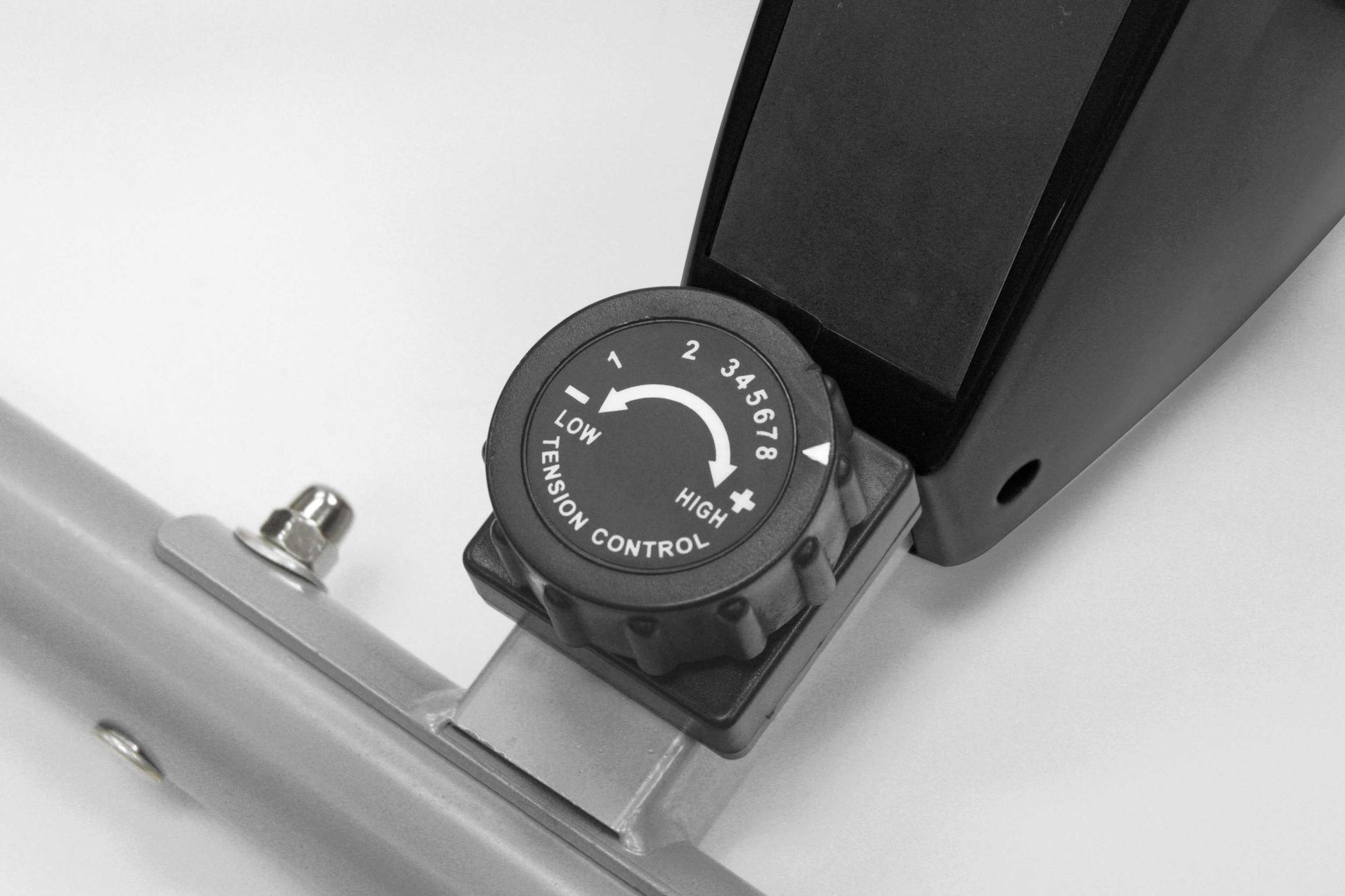 - Eight levels of adjustable resistance controlled by an easy-to-use click dial