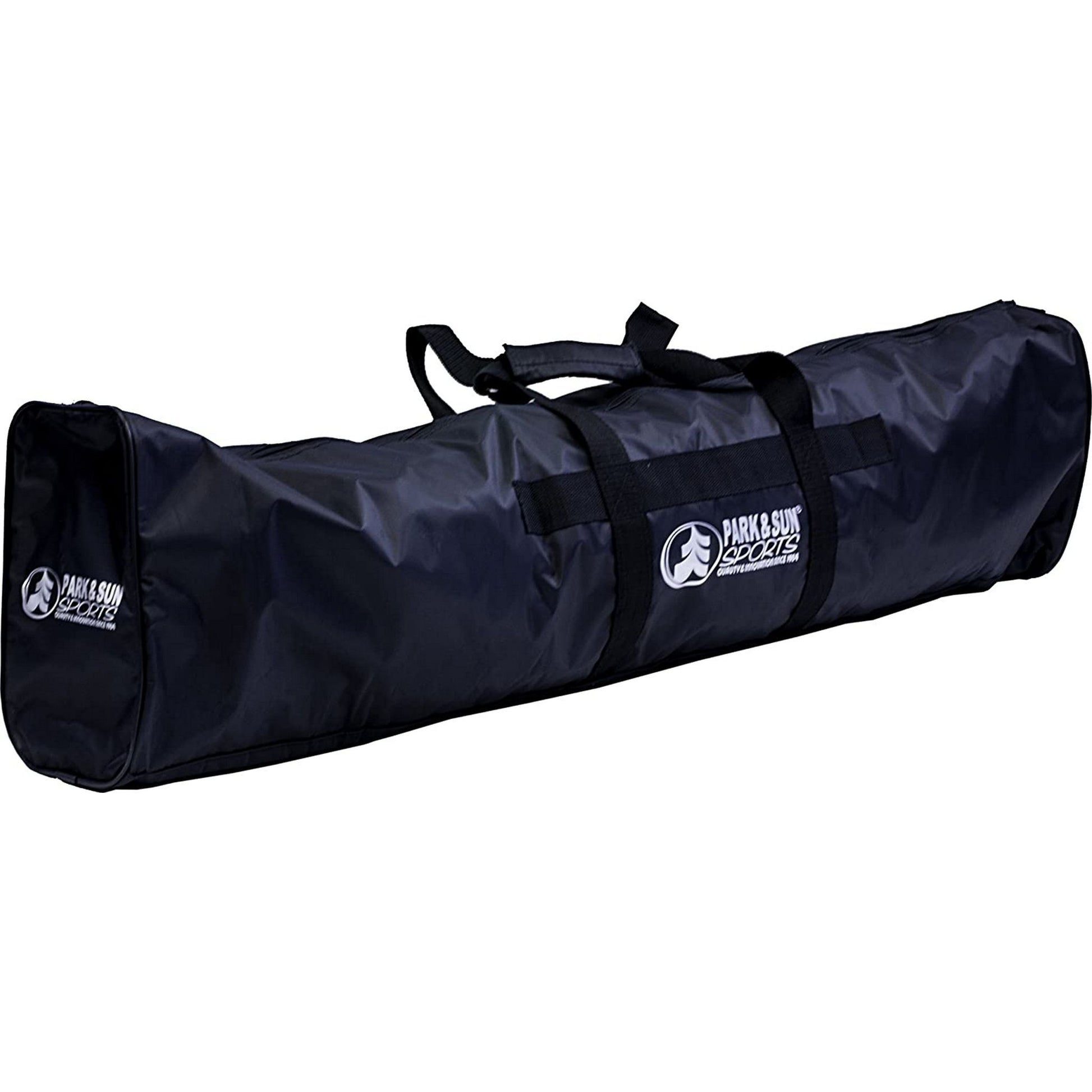 The Park & Sun Sports® Volley Sport portable outdoor volleyball net system includes everything needed for a fun and competitive playing experience. Designed with premium three-piece steel poles, this set is ideal for smaller spaces. The weather-resistant nylon-blend net with reinforced top tape ensures long-lasting performance. Easy to set up and transport, this system provides stability with guylines, ground stakes, and a convenient carry bag.