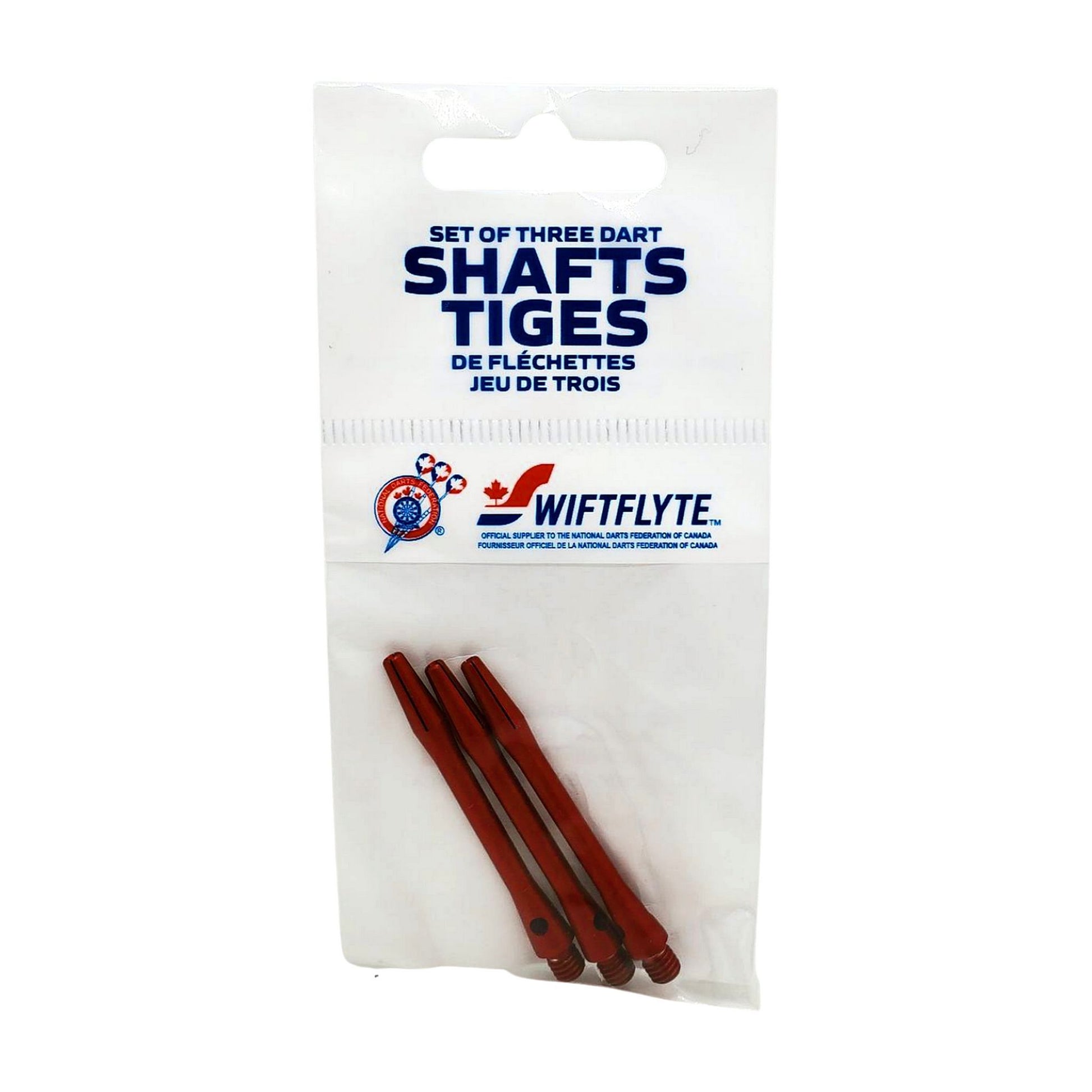 Swiftflyte™ Professional Anodized Aluminum Dart Shafts are designed to pro-level precision specifications and built for exceptional durability, surpassing the performance of nylon or plastic alternatives. This package includes three medium-length shafts with an additional layer of colored oxide for extended durability. They feature a standard 2ba thread, ensuring a universal fit on most dart barrels. Crafted in the classic shape for a consistent flight path, these shafts include a cross-hole locking device, which allows you to easily adjust their tightness on a dart barrel with the steel tip of a dart, providing ultimate control and customization. Endorsed by the National Darts Federation of Canada (NDFC), each package includes three premium dart shafts, making them an ideal choice for precision and accuracy on the dartboard.