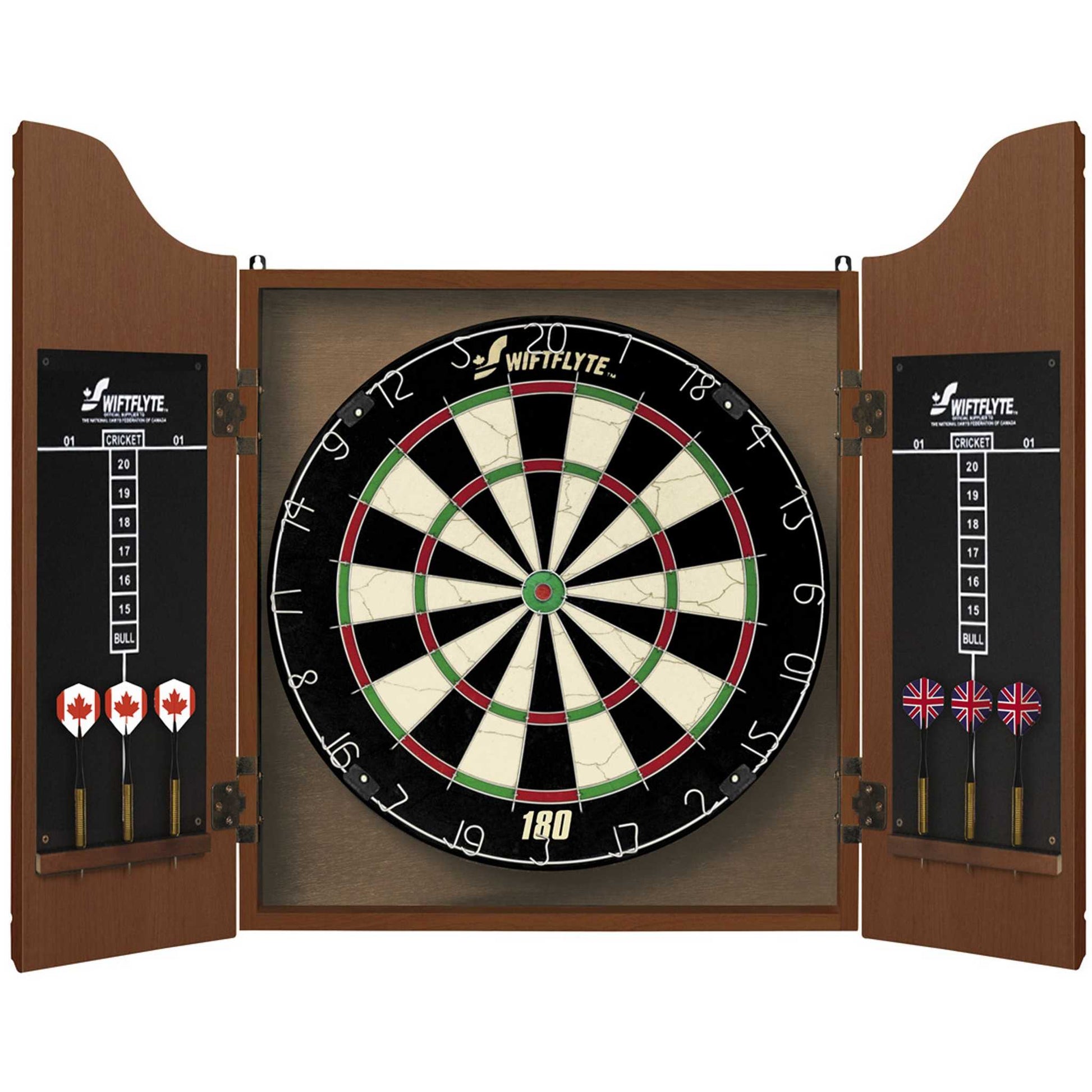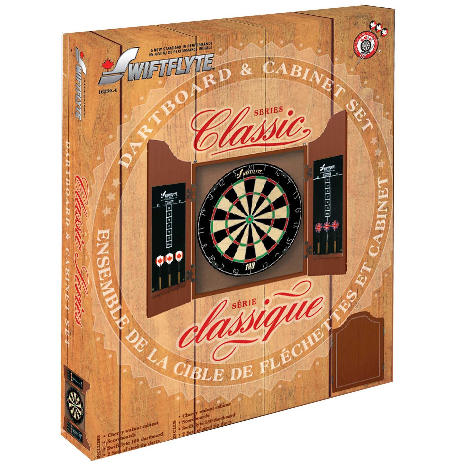 - The Swiftflyte™ Classic Series cabinet & dartboard set is a complete all-in-one ready-to-play darts package for the recreational or competitive player, which includes a dartboard, dartboard cabinet and two sets of darts